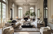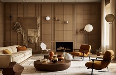 Living rooms in the style of muted, earthy tones, ethereal lighting
